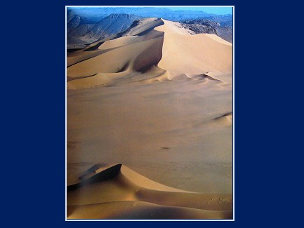 En Afrique, Bernis survole le Sahara : il « assistera ce soir au déshabillé de la terre » (page 14). Courrier Sud est un véritable album photographique du désert, avec « Le Sahara [qui] se dépliait dune par dune sous la lune […] Les vents alizés glissaient sans repos vers le Sud. Ils essuyaient la plage avec un bruit de soie ». Et, lors d’un vol qui d’ailleurs sera le dernier, Bernis découvre « Des dunes prises de biais, [qui] filent leur sable en longues mèches, et chacune se débobine pour se refaire un peu plus loin » (page 57).