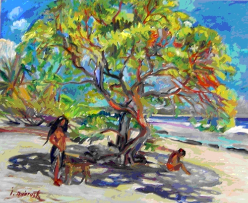 Morea, le tohonu sur la plage, huile