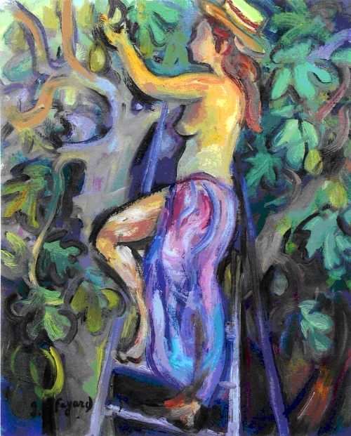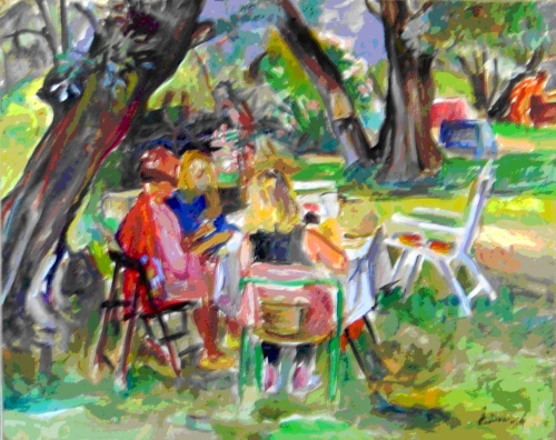 Pique-Nique sous les oliviers, acrylique sur toile, 0,65 *0,81