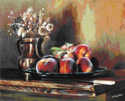 5 - Plateau de pêches 0,33 * 0,41 huile sur