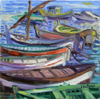 Vieux gréments au Brusc Huile sur toile: 60cm x 60cm